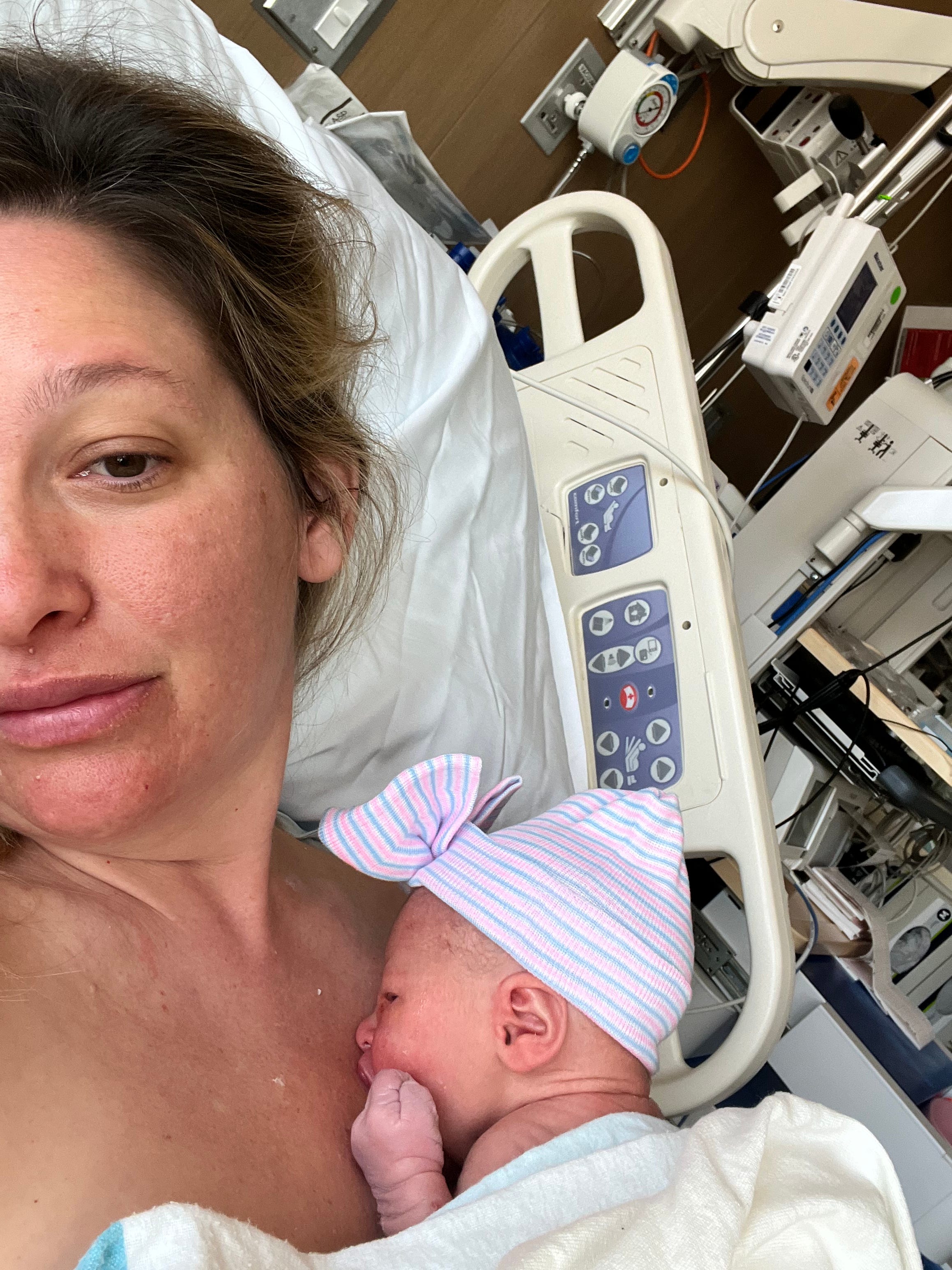 I sat in the hospital bed for days with my hair in a greasy bun. I cried. I laughed. I fell in love with my baby. I felt sorry for my body.